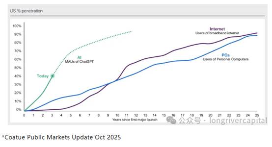 7. 虽然很难判断目前这些AI投入的ROI终局如何,但是已知 1)AI的普及速度超过了过去任何一次科技革命;