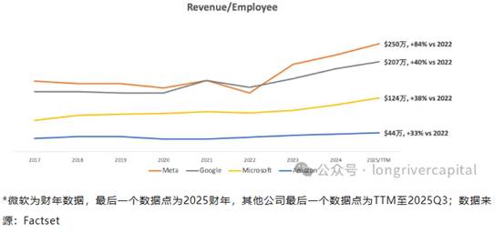 *微软为财年数据,最后一个数据点为2025财年,其他公司最后一个数据点为TTM至2025Q3;数据来源:Factset