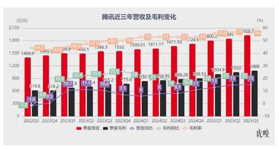 从腾讯向市场递上的 2025Q3 财报来看,三大业绩指标均实现双位数增长:营收同比增长 15% 达 1928.7 亿元,创历史新高;净利润同比增长 19% 达 631.33 亿元;经营利润(Non-IFRS)同比增长 18% 达 725.7 亿元。