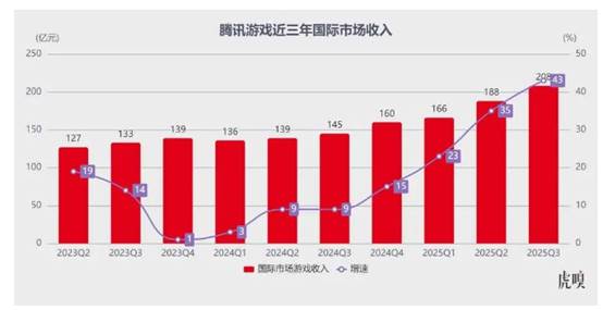 至于国际市场表现,堪称炸裂——游戏收入同比暴涨 43% 达 208 亿元,该板块不仅首次突破 200 亿大关,还创下自 2021Q3 单独披露以来最高增速。