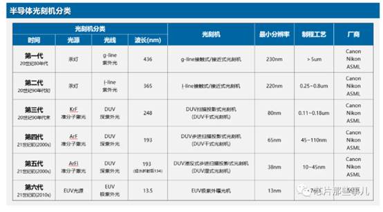 光刻胶与光刻机配套,根据光刻机类型,光刻胶大体分为六大类