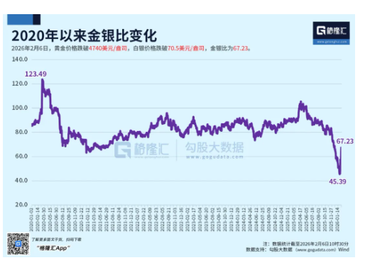 “小池子” 特征,让量化机构集中加仓、散户杠杆资金轻易撬动价格走势。所以白银一定是先行指标。历史上金银比有一个70-75的合理比值。截至2月6日中午,最新金银比已从45回到67,已接近70-75的合理区间。