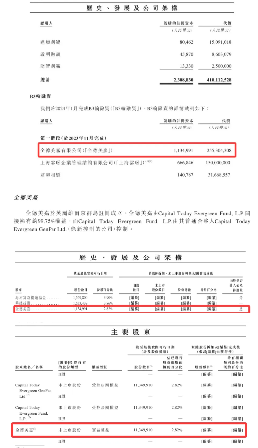 全德美嘉有限公司(由徐新的今日资本控股)2023年11月参与智谱AI的B3轮融资,投资金额为2.553亿元人民币,获得1,135万股,占智谱AI IPO前股份约2.82%。