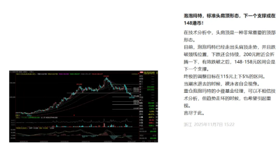 泡泡玛特,标准头肩顶形态,下一个支撑或在148港币!
